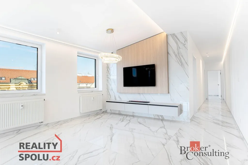 Nabízíme k prodeji exkluzivní, luxusně zrekonstruovaný a kompletně klimatizovaný byt o dispozici 4+kk s celkovou výměrou 200 m², z toho 95,3 m² činí podlahová plocha a 104,7 m² představují prostorné venkovní terasy. Nemovitost se nachází v samotném srdci Brna na ulici Kobližná a nabízí kombinaci moderního designu, nadstandardních materiálů a mimořádně světlého, vzdušného interiéru. V celém bytě je zároveň připravena instalace venkovních žaluzií.