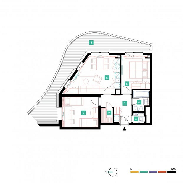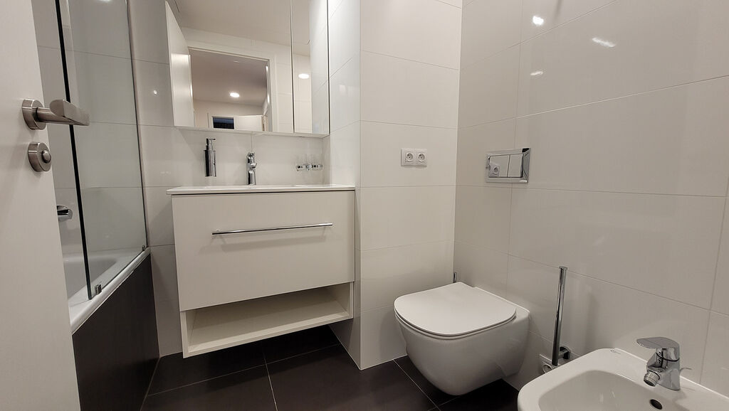 Velmi zajímavý byt (č.1213) o dispozici 3+kk s prostornou terasou a výhledem ze 12. patra moderní budovy situované přímo na metru B. Byt je kompletně zařízený a najdete v něm tedy veškeré potřebné vybavení, včetně přikrývek a polštářů! V koupelně Vás jistě potěší příjemné podlahové vytápění a vana.