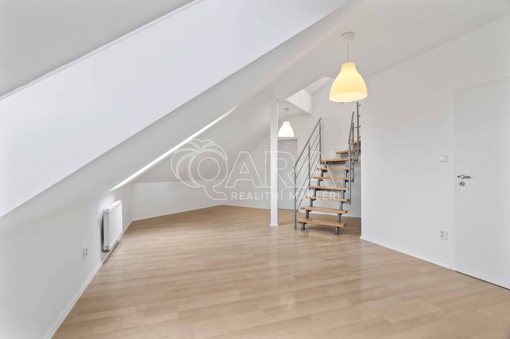 V zastoupení majitele nabízíme k dlouhodobému pronájmu světlý mezonetový byt o dispozici 3+kk a podlahové ploše 91,4m², který se nachází v 5. a 6. patře bytového domu v ulici Spojovací, Praha 9 – Vysočany.