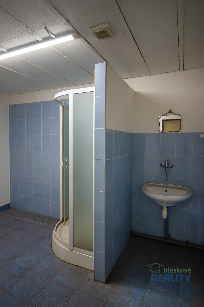Uvnitř se nachází sociální zázemí se sprchou a WC . Celý prostor je plně osvětlen.