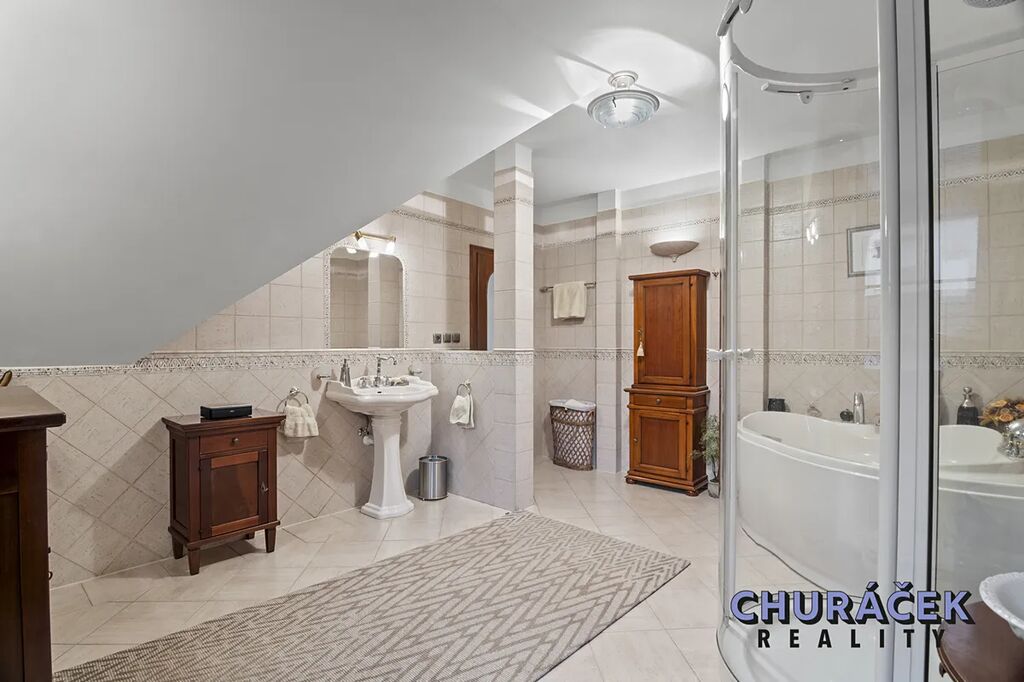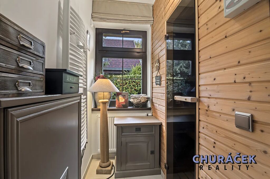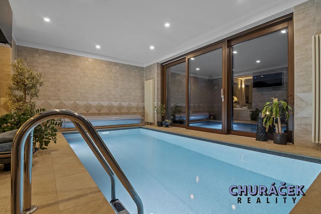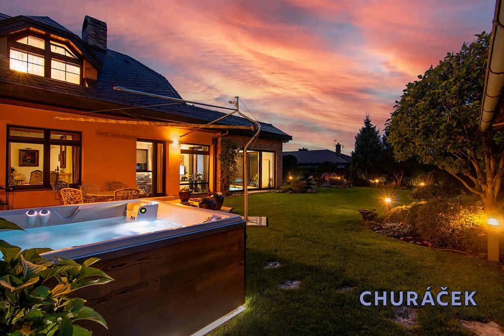 Tento prostorný dům nabízí luxusní a pohodlné bydlení s velkým obývacím pokojem, který je přímo propojený s vnitřním bazénem. Dále zde najdete saunu, venkovní vířivku a pergolu s grilem, ideální pro chvíle relaxace a setkávání s přáteli. K domu náleží také zastřešené parkování a udržovaná zahrada o rozloze téměř 1000 m², která poskytuje dostatek soukromí a prostoru pro rodinné aktivity.