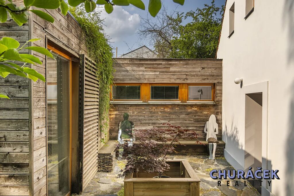 Součástí nemovitosti je i samostatně stojící objekt, který nyní slouží jako dílna, ale nabízí široké možnosti využití – může se proměnit v ateliér, wellness, garáž nebo samostatnou obytnou jednotku 2+kk. Na střeše tohoto objektu je navíc vytvořen relaxační prostor, ideální pro klidné večery nebo ranní kávu.