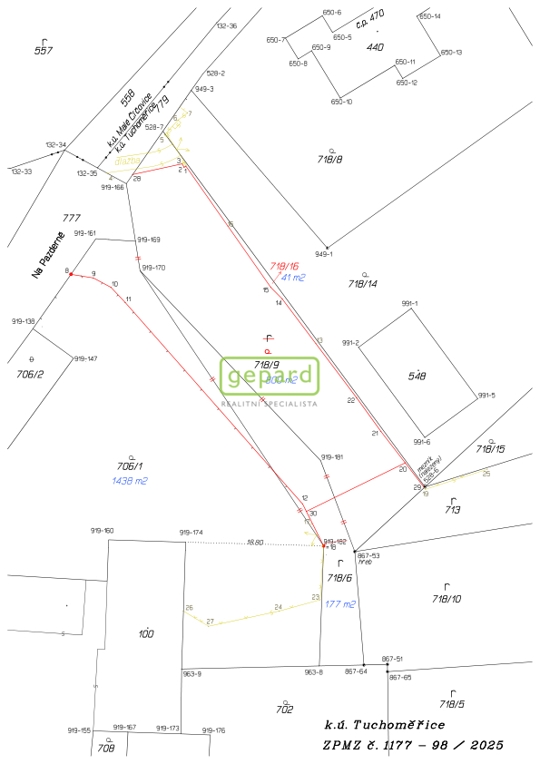 K prodeji se nabízí nově vzniklý pozemek parc. č. 718/9 o výměře 800 viz. návrh od geodeta ve fotkách.