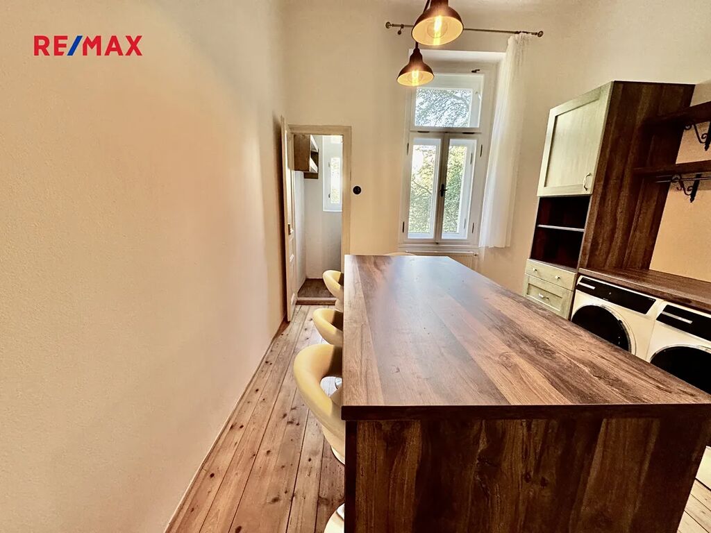 Dominantou bytu je kompletně zrekonstruovaná kuchyně s jídelním koutem a centrálním ostrůvkem. Kombinace kvalitních materiálů, dostatku úložného prostoru a celkové atmosféry vytváří místo, kde se budete opravdu rádi scházet – ať už u rychlé snídaně, nebo při večerním vaření s přáteli. Kuchyně se spíží a jeden z pokojů směřují do tichého, udržovaného vnitrobloku, který je příjemným útočištěm uprostřed města.
