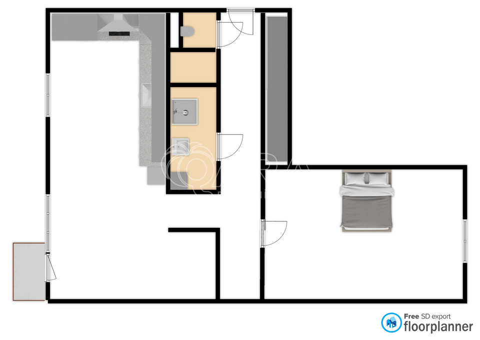 Vybavení: moderní kuchyňská linka, lednice, vestavěné skříně