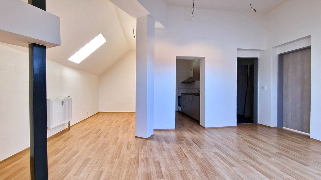 Nabízíme k dlouhodobému pronájmu hezký, prostorný, podkrovní byt 2+kk v ulici Fučíkova v Terezíně. Tento útulný byt se nachází ve 3. patře skeletové budovy po kompletní rekonstrukci. Disponuje velkým obývacím pokojem (cca 27 m2) s prostorem kde lze vytvořit pracovnu nebo místo na spaní, odděleným kuchyňským koutem (cca 5m2), ložnicí (cca 10 m2) a koupelnou s vanou a WC. Byt se nachází ve velmi dobře zateplené budově s nízkými náklady na vytápění. Velkorysé, prostorné společné prostory domu poskytují komfortní bydlení. V areálu domu je možné si po dohodě pronajmout oplocené parkovací stání. V blízkosti se nachází veškerá občanská vybavenost, školy, školky a dostatek zeleně pro procházky. Tato nabídka je ideální pro pracující jednotlivce nebo páry hledající moderní a pohodlné bydlení v klidné lokalitě. Pro více informací a domluvení prohlídky nás kontaktujte.
