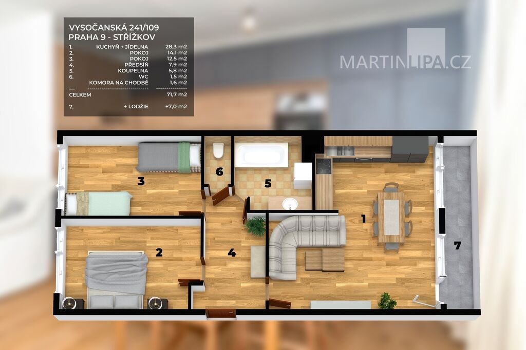 Prodej bytu 3+kk, Praha - Střížkov, Vysočanská, 71 m2