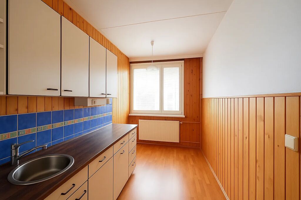 Byt je po částečných úpravách – má plastová okna, plovoucí podlahy a zasklenou lodžii. Původní bytové jádro je velmi zachovalé.
