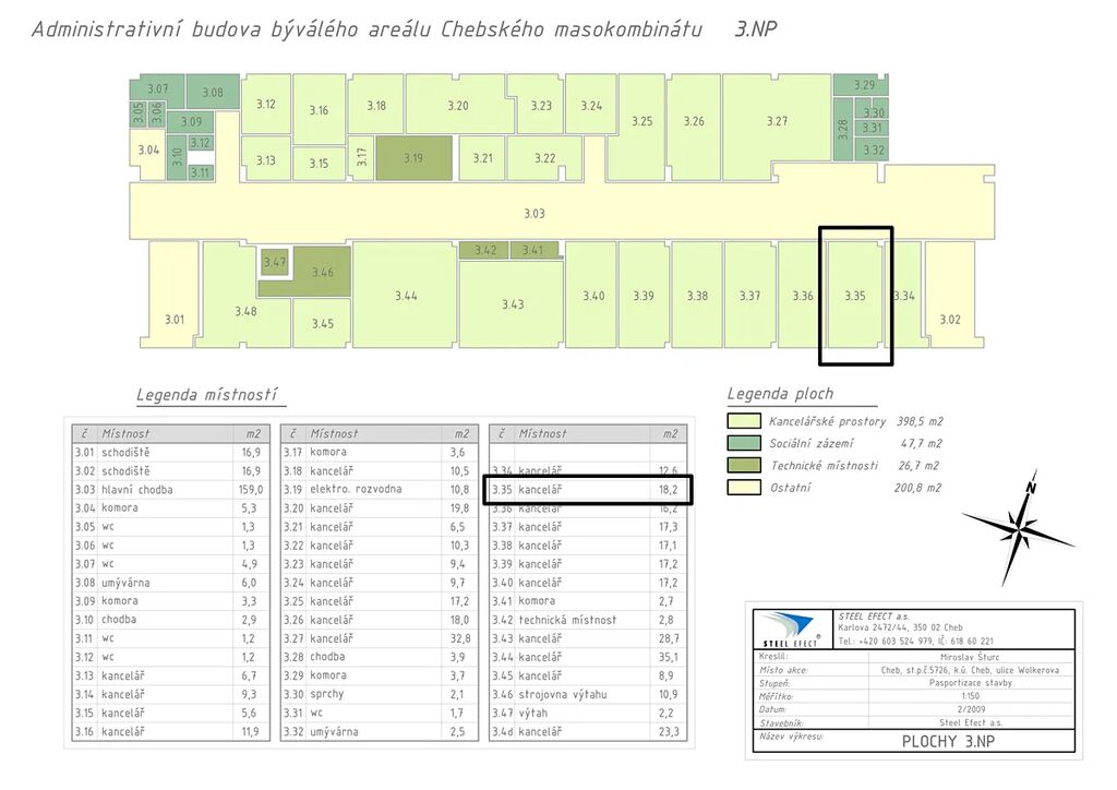 Nabízíme k pronájmu kanceláře v areálu Masna, Wolkerova 2005/30, Cheb. Prostor se nachází ve 3. NP administrativní budovy.