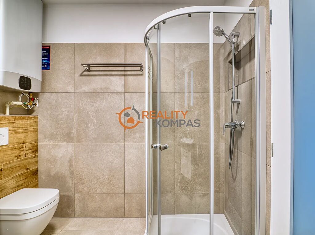Nabízíme Vám k pronájmu moderní, světlý a čistý byt, nacházející se v novostavbě bytového domu Rezidence Smetanova, Hodonín. Jedná se o byt o velikosti 2+kk s podlahovou plochou 45 m2 a s terasou o velikosti 5,34 m2 a šatnou o velikosti 3,68 m2. Bytová jednotka je umístěna v 1. nadzemním podlaží s výtahem. Byt disponuje vstupní chodbou vybavenou šatní skříní a odkládacím prostorem, koupelnou se sprchovým koutem, umyvadlem a toaletou, šatnou, plně vybaveným kuchyňským koutem a obývacím prostorem, prostorem ložnice s vestavěnými skříněmi. K bytu náleží kryté parkovací stání v suterénu domu a společná kolárna. Vytápění bytu je řešeno podlahovým elektrickým topením s termoregulací ve všech místnostech, v bytě je také klimatizace a zabudovaný internet. Nájem činí 13.000,-, zálohy na služby 3.000,- a nájem vlastního parkovacího stání činí 2.000,-, celkem tedy 18.000,-/měsíc, vratná kauce 30.000,-, provize RK 18.000,-. Byt je vhodný pro jednotlivce i pro páry, bez domácích mazlíčků. Byt k dispozici od 10/2025.