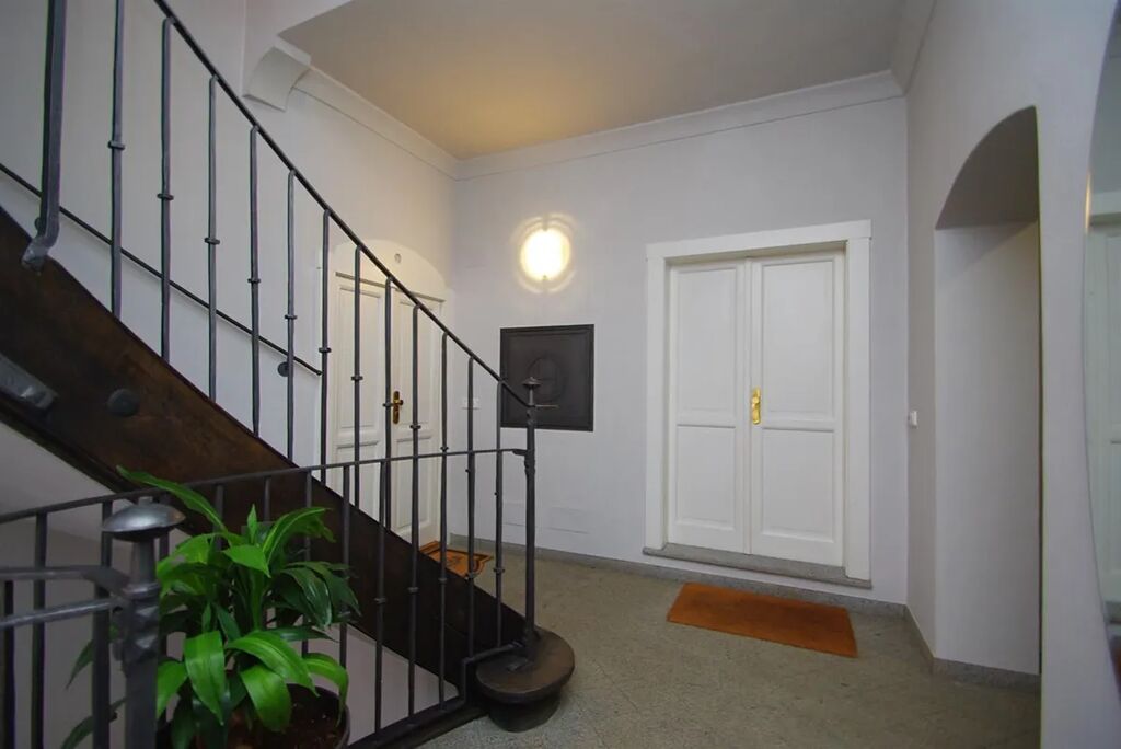 Plně zařízený byt 3+1 (2 ložnice, 2 koupelny), o celkové obytné ploše 73 m2, je situován v 1. patře dobře udržované rezidenční budovy s výtahem v prestižní lokalitě Prahy na Malá Straně, v ulici Hroznová.