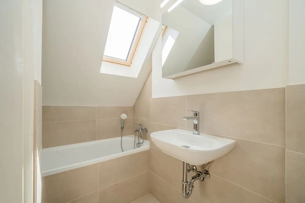 Zde se nachází další koupelna a vstup do podkrovního prostoru, který zaujme původními dřevěnými trámy a příjemnou atmosférou. Z podkroví vedou schody do otevřené galerie, která může sloužit jako ateliér, pracovna, knihovna nebo relaxační zóna.