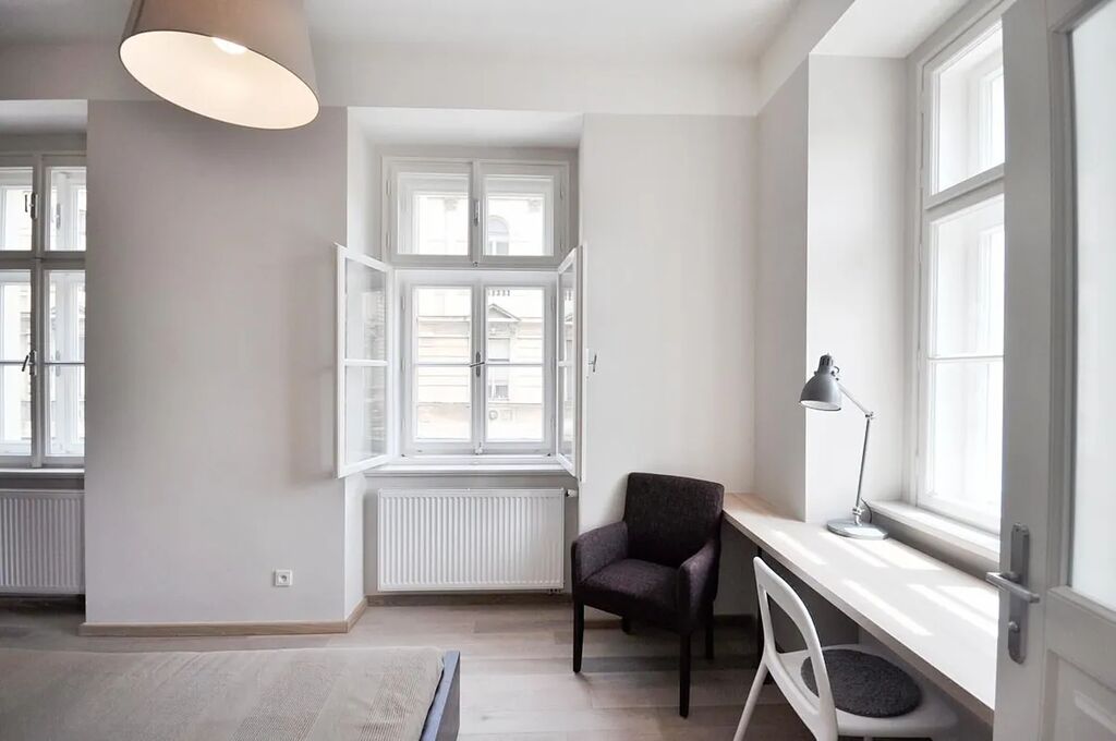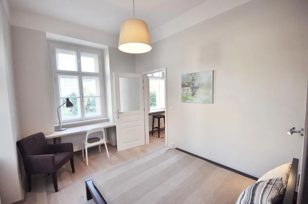 Moderní, zařízený byt 2+kk ( 1 ložnice, 1 koupelna) o rozloze 58 m2 je situovaný ve 2. patře velice dobře udržovaného, zrekonstruovaného domu s výtahem, v ulici Elišky Peškové, Praha 5 Smíchov.