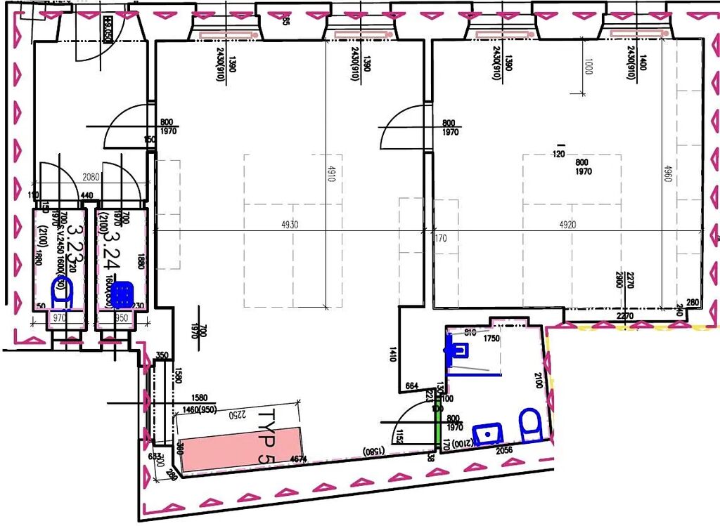 Prostory jsou nezařízené a dispozičně nabízí vstupní chodbu (6,9m2), dvě místnosti (24,7m2 a 25,2m2), jednu s čajovou kuchyňkou (12,5m2) vybavenou spotřebiči (varná deska, lednice, myčka), koupelnu (4,4m2) s toaletou a umyvadlem, samostatnou toaletu a úklidovou místnost. V prostorách jsou vinylové podlahy, keramická dlažba a koberce. Ve všech místnostech jsou rozvody sítí (zásuvky, internet, optický kabel).