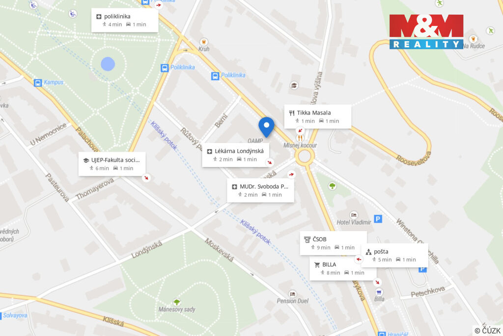 Je jí tato jednotka na Masarykově ulici v Ústí n.L. V současné době je na katastrálním úřadu vedena jako nebytová a slouží k podnikání (aktuálně je zde provozován masérský salon). Je orientována do dvora, stranou od ruchu hlavní třídy, takže je zde klid.
