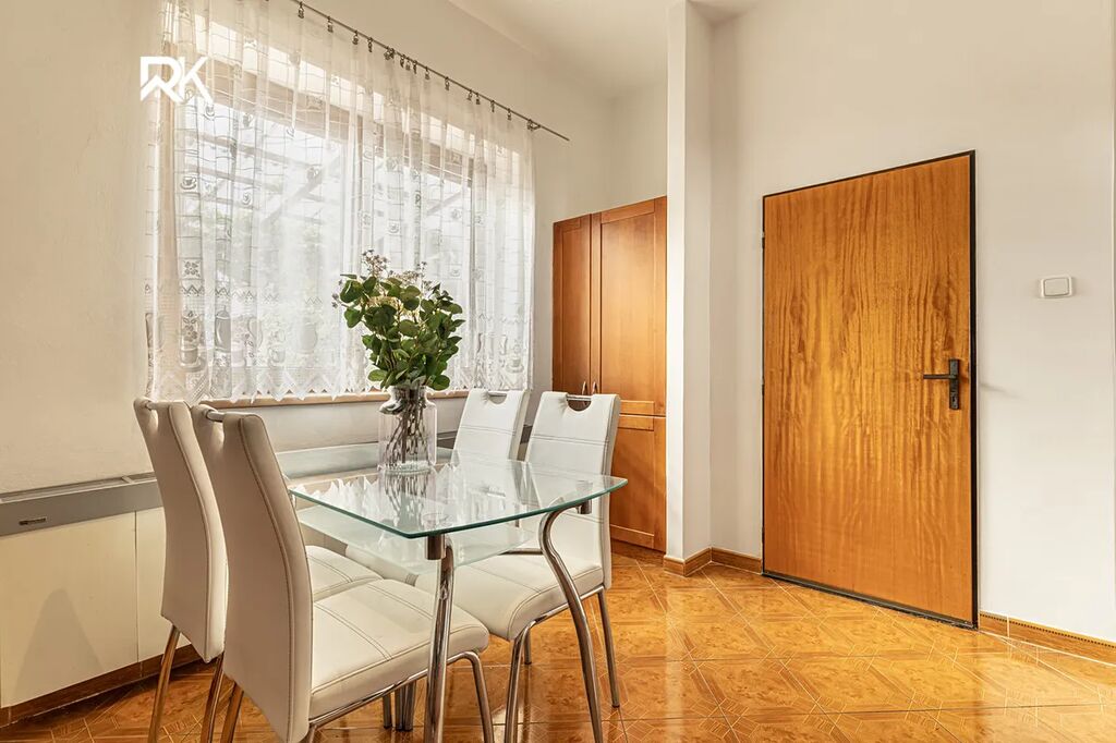 Dům je ideální volbou pro rodinné bydlení. Disponuje prostorným obývacím pokojem s dostatkem světla, samostatnou kuchyní a třemi ložnicemi, které nabízejí dostatek soukromí i variabilitu využití. Praktickou součástí domu je garáž a příjemným benefitem menší zahrádka, která poskytuje dostatek prostoru pro odpočinek, posezení i drobné zahradničení. Na pozemku se navíc nachází bazén, který v letních měsících ocení celá rodina.