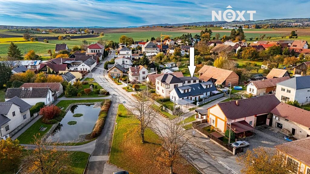 Dům se nachází v klidné obci - občanská vybavenost, školka, samoobsluha, koupaliště, zastávka autobusu přímo u domu