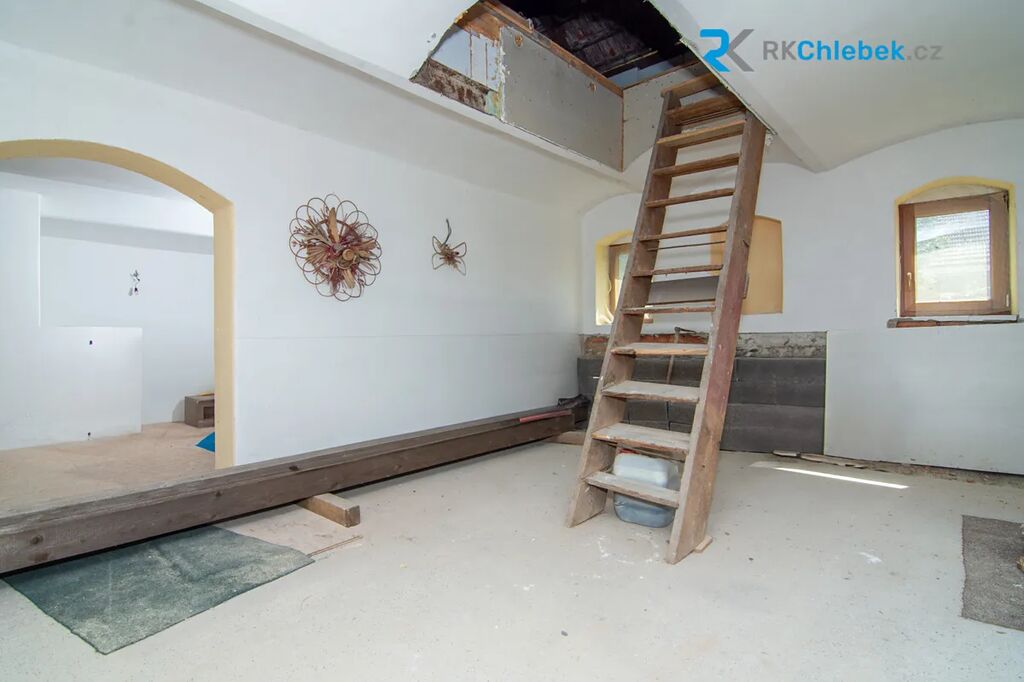 - dům s pozemkem 722 m² – ve fázi rekonstrukce, ideální k dokončení dle vlastních představ. Jeho součástí je také prostorná garáž, hospodářská budova a romantický vinný sklípek. Možnost využití půdních prostor.