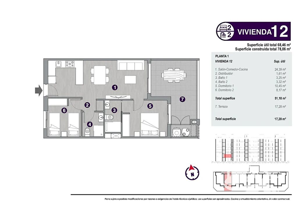 Torrevieja je město známé příjemným středomořským klimatem, dlouhými promenádami a přírodními parky s růžovými a zelenými solnými jezery. V okolí se nachází kvalitní služby, restaurace, kavárny, obchody i nákupní centrum Torremarina přímo naproti rezidenci. Pláž La Mata je v docházkové vzdálenosti a nabízí široký pás písku, příjemné koupání a krásné podvečerní světlo. Výhodou je i skvělé spojení s letišti v Alicante a Murcii.