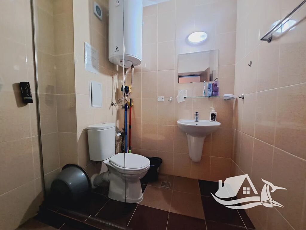Tento světlý apartmán 2+kk o celkové ploše 64,38 m² se nachází v pátém podlaží moderního komplexu Chateau Aheloy 3, pouhých 520 metrů od pláže. Jižní orientace propouští do interiéru dostatek světla a z balkonu můžete sledovat mořský horizont – místo jako stvořené pro ranní kávu, večerní odpočinek nebo letní večeře pod širým nebem.