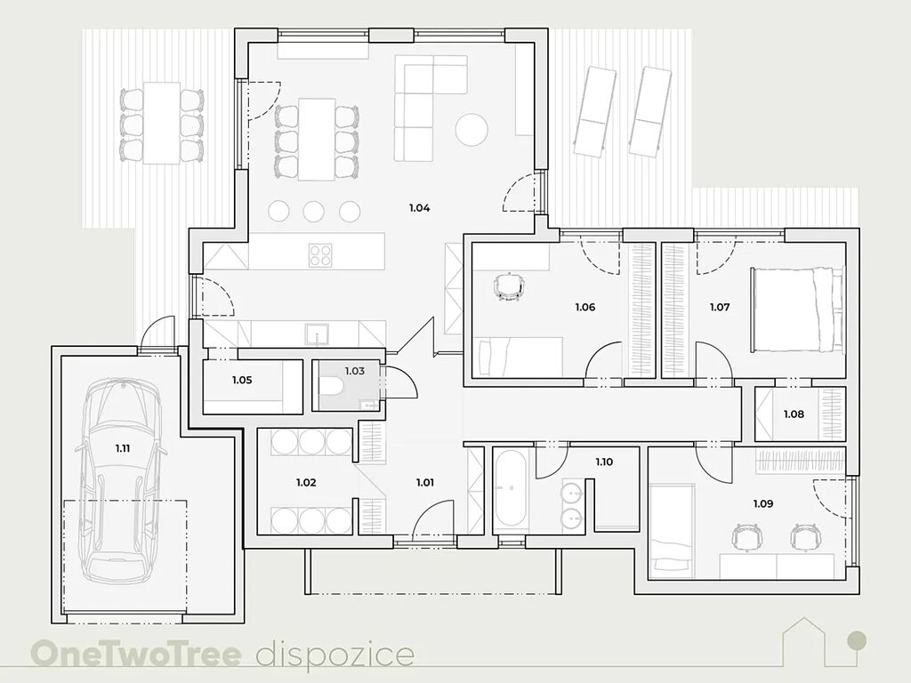 - Obytná část: 134 m², užitná plocha včetně terasy 169,25 m²