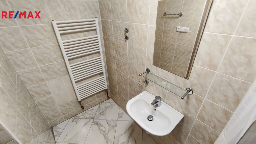 V bytě najdete oddělené WC, kuchyňskou linku vybavenou elektrickou troubou se sklokeramickou varnou deskou, digestoří, dřezem, prostorem pro lednici nebo možností připojení menší myčky nádobí. Na kuchyni navazuje prostorná obytná místnost s posuvnými dveřmi a možností připojení na vysokorychlostní internet. Koupelna je vybavena vestavným sprchovým koutem, umyvadlem se zrcadlem a žebříkovým radiátorem. Prostor pro pračku a sušičku je vymezen v oddělené technické místnosti. Vytápění je řešeno plynovým kotlem přímo v budově, který v kombinaci s bojlerem na ohřev vody zajišťuje nízké provozní náklady.