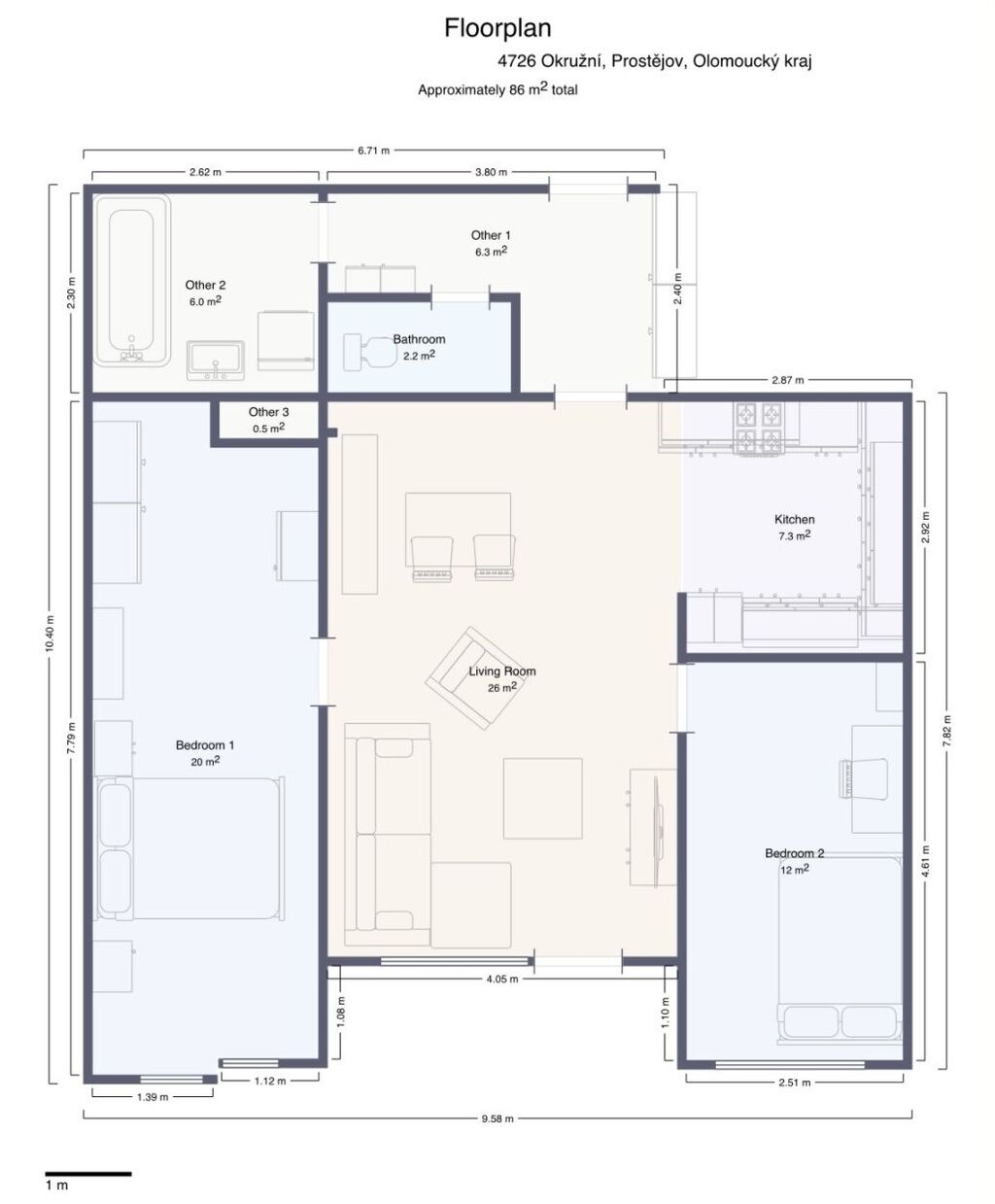 Byt leží v jedné z nejpříjemnějších částí Prostějova. Do centra je to 15 minut chůze, do Kolářových sadů pár minut, a pokud chcete popojet k vodě, Plumlovská přehrada je vzdálená jen pár minut jízdy.