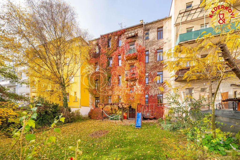 Skvělým benefitem je možnost využívat zahradu ve vnitrobloku (k bytu náleží podíl na zahradě za domem) – pro odpočinek, posezení nebo hraní dětí.