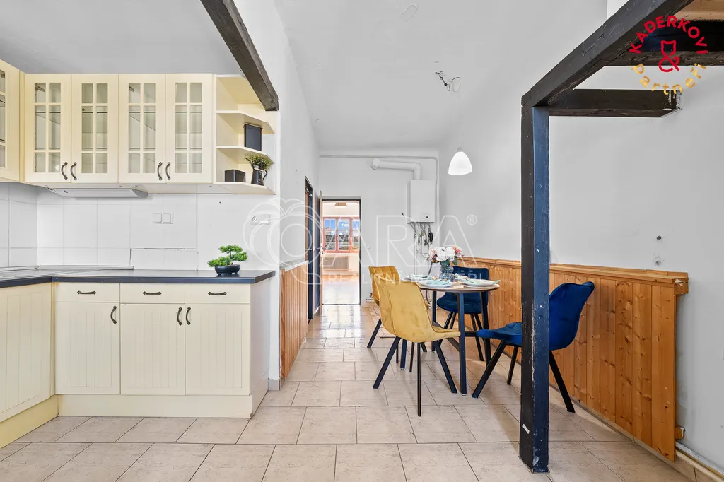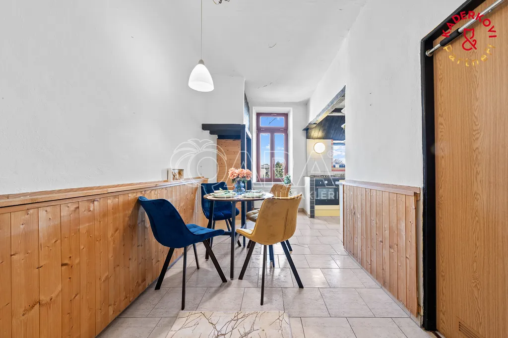 • Jídelna s kuchyní (15,16 m²) – orientovaná na východ, směrem do vnitrobloku a zahrady