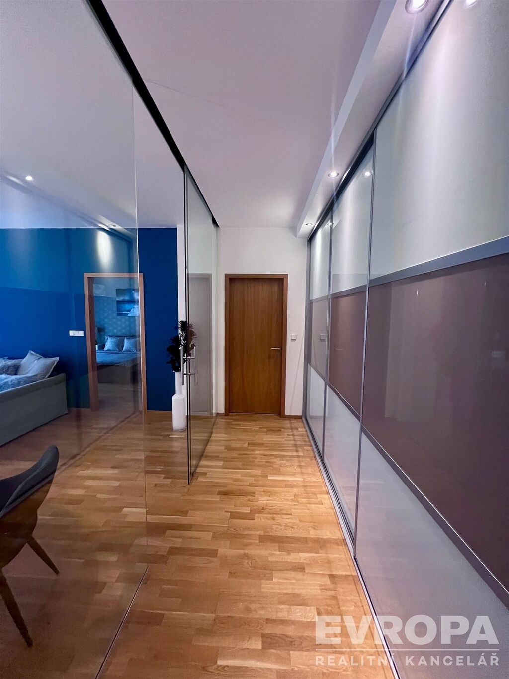 K dlouhodobému pronájmu nabízíme elegantní a plně zařízený byt o dispozici 2+kk plus pracovna. Byt je situovaný ve 2. NP budovy v prestižní rezidenci Korunní Dvůr. Objekt nabízí recepci a 24hodinovou ostrahu.
