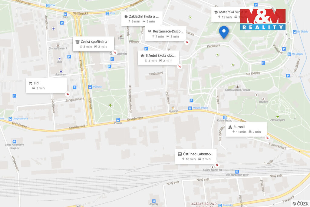 Byt se nachází v místě s kompletní občanskou vybaveností. Přímo za domem najdete základní školu, mateřskou školu a sportovní halu, což činí lokalitu ideální pro rodiny s dětmi i aktivní životní styl. V pěším dosahu jsou také obchody, služby, zastávky MHD a zeleň pro volnočasové aktivity