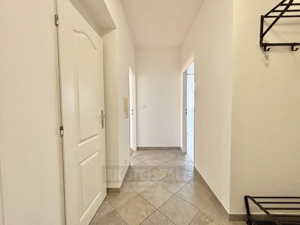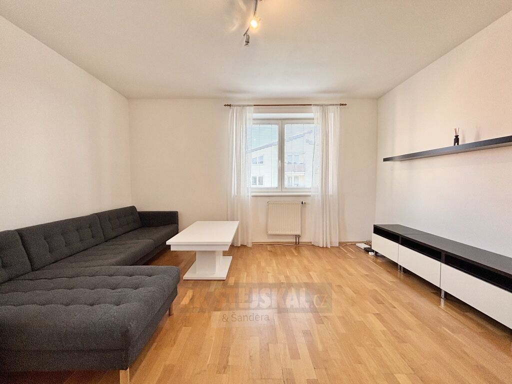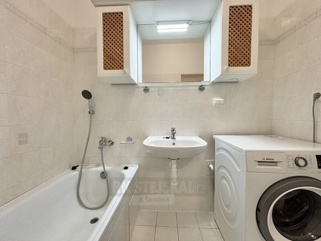 Byt zaujme svou prostorností, promyšlenou dispozicí a kompletním vybavením, které nabízí maximální komfort pro pohodlné bydlení. Při vstupu vás přivítá velká předsíň s věšákem a samostatná šatna, ideální pro uložení obuvi i oblečení. Koupelna je vybavena vanou, zrcadlem s úložným prostorem a pračkou, která je součástí nájmu, přičemž toaleta je prakticky oddělena. Prostorná ložnice disponuje vlastní šatnou a vstupem na balkon, který poskytuje příjemné místo k odpočinku. Obývací pokoj působí vzdušně a nabízí dostatek prostoru pro relaxaci i setkávání, doplněný velkou sedací soupravou a televizní stěnou. Kuchyně s moderní linkou ve tvaru „L“ je ve výborném stavu a plně vybavena všemi spotřebiči – varnou deskou, troubou, myčkou a lednicí s mrazákem. Součástí je také jídelní stůl vhodně zasazený do prostoru. Velkou výhodou je také pohodlné parkování přímo v ulici bez omezení.