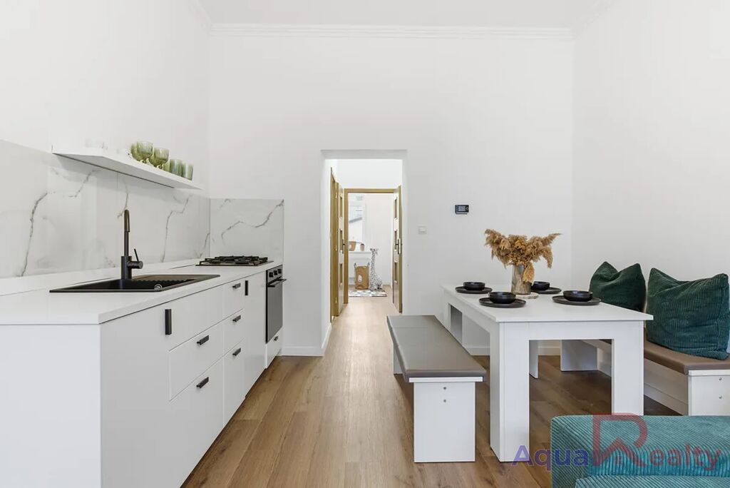 Byt prošel kompletní moderní rekonstrukcí se zaměřením na praktičnost a současný styl. Vytápění a ohřev teplé vody zajišťuje nový plynový bojler, což přináší úsporu provozních nákladů a nezávislost na centrálních dodávkách. V celém bytě jsou instalována plastová okna, na podlaze je kvalitní vinyl, který je nejen vzhledově příjemný, ale i velmi odolný a snadný na údržbu. Koupelna je vyhotovena v moderním designu velkoformátová dlažba v dekoru mramoru, doplněná černými prvky sanity, dodává prostoru luxusní charakter.