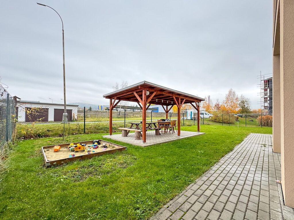 Hledáte klidné bydlení v moderním bytě se zahradou? Nově zrekonstruovaný byt v Rozvojové zóně 502 v Janovicích nad Úhlavou může být již brzy Vaším domovem. Byt má dispozici 2+kk, 46m2 a zatravněnou zahradu o ploše 98m2. Byt se nachází v přízemí a skládá se ze zádveří s chodbou,  koupelny se sprchovým koutem, místem na pračku a wc (světlo nad umyvadlo bude nainstalované), vybaveného obývacího pokoje vč. rozkládací sedačky, kuchyňským koutem a ložnicí se skříní a dvěma samostatnými postelemi (mohou být odvezeny). Z obou místností je přímý vstup na zahradu.  Rekonstrukce bytu byla před časem dokončena a byt čeká na svého prvního nájemníka. Vhod přijde určitě také sklep (2m2). Krom soukromé zahrady je  také možnost využít společnou zahradu s posezením. Parkovat je možné bez problémů před domem.