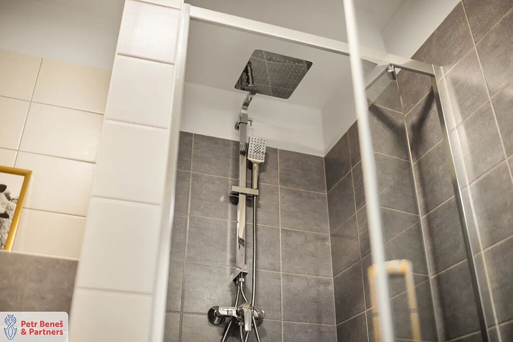 Interiér je zařízen tak, aby bylo možné se nastěhovat okamžitě a bez starostí. K dispozici je místo pro odpočinek i práci, moderně řešená kuchyňská linka, příjemný obývací prostor i dostatek úložných možností. V koupelně vás čeká prostorný sprchový kout, který zpříjemní každodenní rutinu.