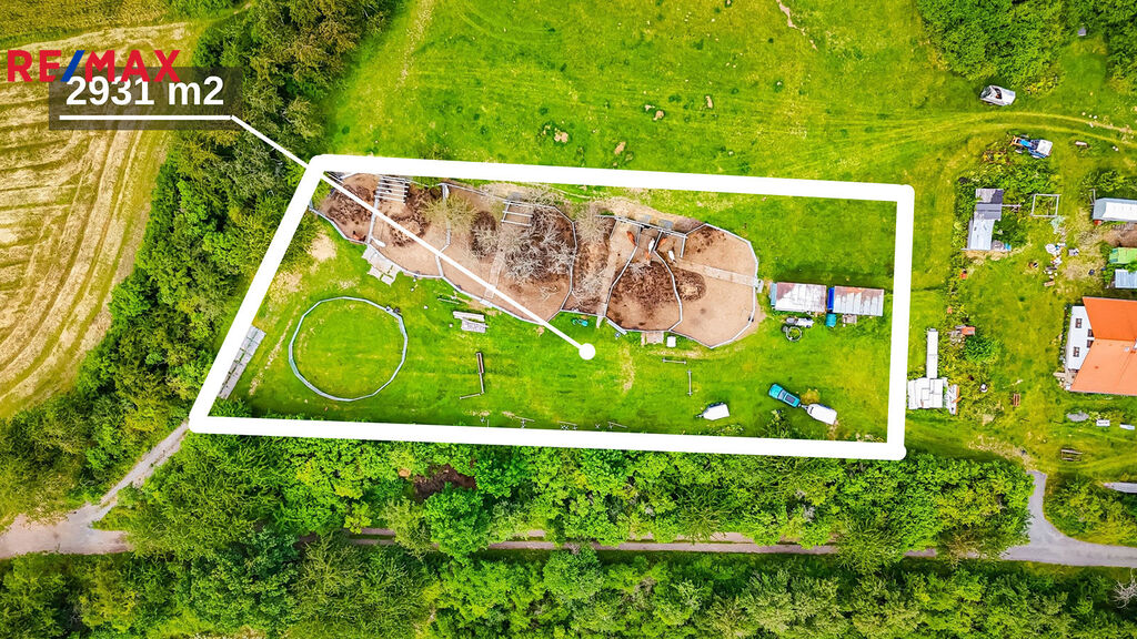 Pozemek je podle podmínek územního plánu možné rozdělit na tři menší, čímž by se ale ubral tomuto místu ráz soukromí na krásném, rovinatém pozemku s výhledem do okolní zeleně. Dříve byl využívaný pro výběh a trénování koní, tito jsou již přestěhováni a pozemek se postupně vyrovnává a připravuje pro nový život.