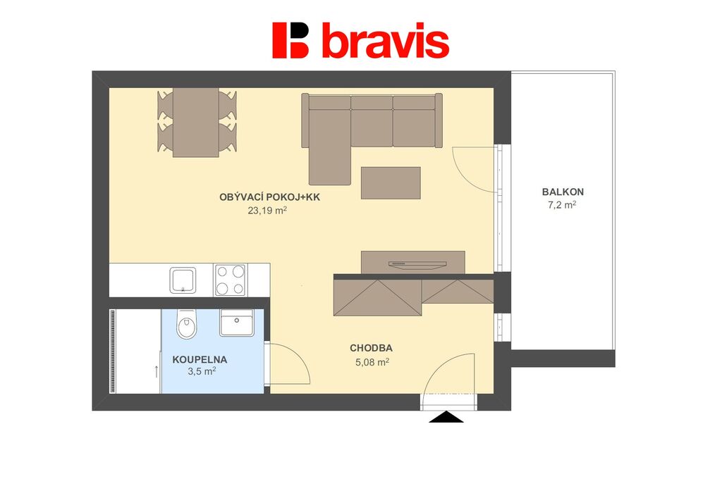 Byt o dispozici 1+kk má užitnou plochu 32,72 m² a nabízí vše, co potřebujete pro pohodlné městské bydlení. Třešničkou na dortu je prostorná lodžie o velikosti 7,2 m², ideální pro ranní kávu na čerstvém vzduchu nebo relax po náročném dni. K bytu náleží sklep (3,49 m²), který nabízí dostatek úložného prostoru na vaše sezónní věci nebo sportovní vybavení.