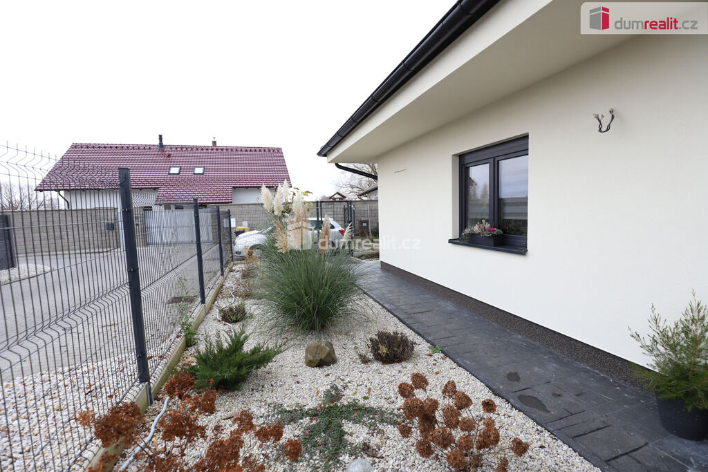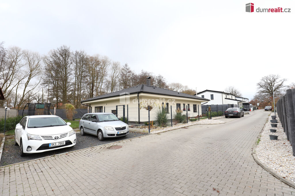 Dumrealit.cz Vám zprostředkuje koupi krásného před třemi lety dokončeného domu typu bungalov v klidné lokalitě Chlumeček u Chebu. Dům obklopuje rovinatý pozemek s dokončeným plotem a upravenou zahradou o celkové rozloze 711 m² z čehož 174 m² tvoří zastavěná plocha. Řádně zkolaudovaný a dokončený dům stavěný z pálených broušených cihel nabízí dispozici 5+kk na ploše 140 m² a je napojen na inženýrské sítě včetně vodovodního řadu a elektřiny. Vytápění zajišťuje tepelné čerpadlo, ohřev teplé vody pak samostatné druhé čerpadlo se zásobníkem. V obývacím pokoji je krb s komínem a krbovou vložkou jako alternativní zdroj tepla s horkovzdušným rozvodem. Způsob topení je v celém domě podlahové. Rozložení místností: velkorysá kuchyně spojená s obývacím pokojem a jídelním koutem odkud je přístupná terasa, pracovna, 3 ložnice, z nichž u jedné je k dispozici šatna, dále koupelna s vanou, sprchou a toaletou, další samostatná toaleta, předsíň, komora a chodba. Na chodbě je přístup na půdu, která skýtá spoustu úložného prostoru. Okna rodinného domu jsou izolační dvojskla. Na podlahách domu je převážně vinyl, v koupelně a na toaletě dlažba na betonové mazanině. Strop je zateplen. Střešní krytina je betonová taška Bramac. Dešťová kanalizace a srážkové vody jsou svedeny do dešťové nádrže. Odpad je do jímky. Parkování pro 2 automobily na vlastním pozemku. V blízkosti je veškerá občanská vybavenost včetně stanice MHD, nádraží, pošty, obchodů, restaurací atd.. Cheb nabízí kompletně opravené náměstí, kde najdete vyhlášené restaurace Hvězdu či U Krále Jiřího, banky, úřady, obchody, městský úřad, občerstvení apod., příjemně se dá trávit čas v kulturně-historické památce komplexu chebského hradu, na který navazuje krásný sportovní volnočasový areál s parkem Krajinka. V Chebu je několik nádherných kostelů včetně kostelu sv. Mikuláše a Alžběty. Město se nachází 9 km od Německa, kde je jak možnost výhodných nákupů tak finančně zajímavého pracovního uplatnění. Cena zahrnuje provizi RK a veškerý právní servis. Ev. číslo: 653102.