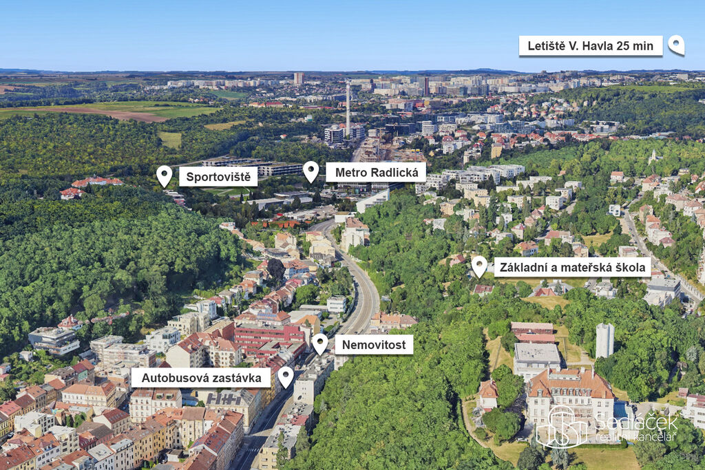 Smíchov patří mezi nejžádanější pražské čtvrti díky kompletní občanské vybavenosti, blízkosti parků a výborné dopravní dostupnosti. Tramvajová zastávka je přímo před domem, metro Anděl i Radlická jsou dvě zastávky. Do centra se dostanete během několika minut.