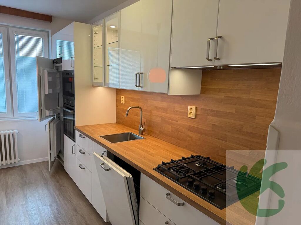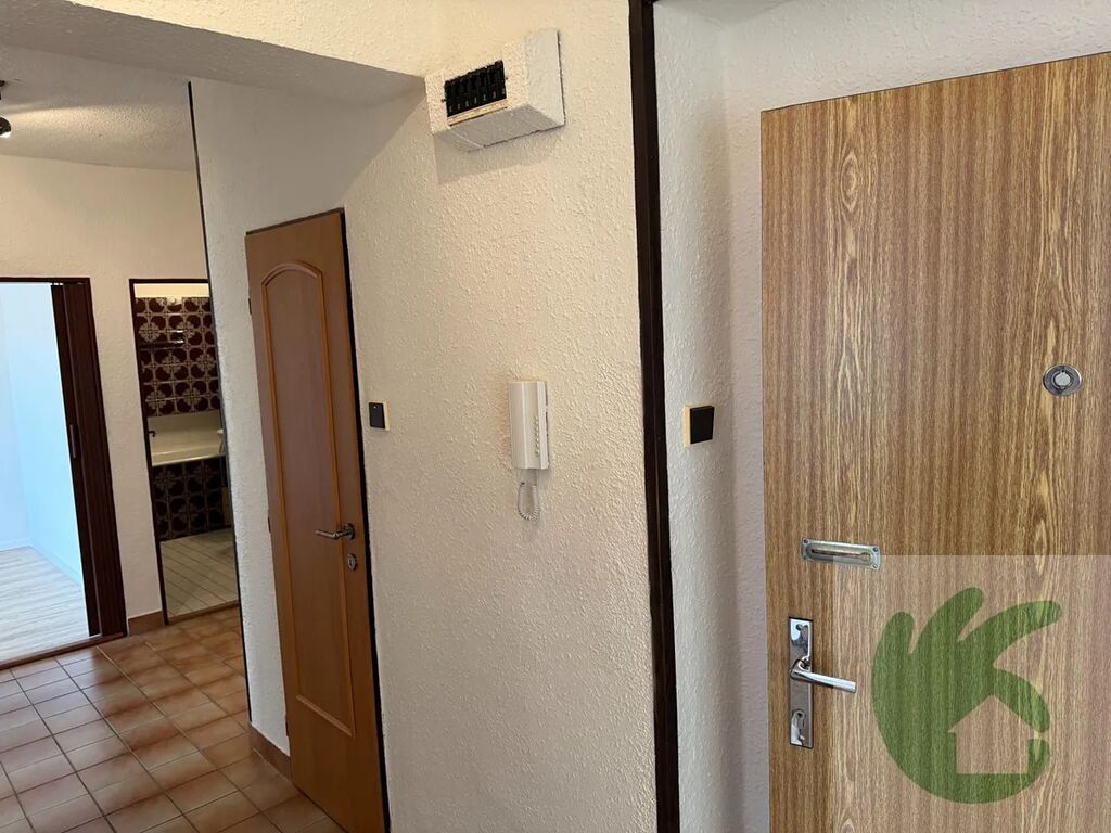 Byt je tvořen chodbou s dlažbou a svítidlem odkud je vstup do koupelny s vanou umyvadlem a pračkou, samostatnou toaletou a do dvou neprůchozích ložnic. Další dveře Vás zavedou do kuchyně s vestavnými spotřebiči (lednice, myčka, plynový vařič digestoř, vestavná trouba a mikrovlnka). Dále pokračujeme do obývací místnosti s vinylovou podlahou a svítidlem, z obývacího pokoje vstoupíte na prostorný zasklený balkón.