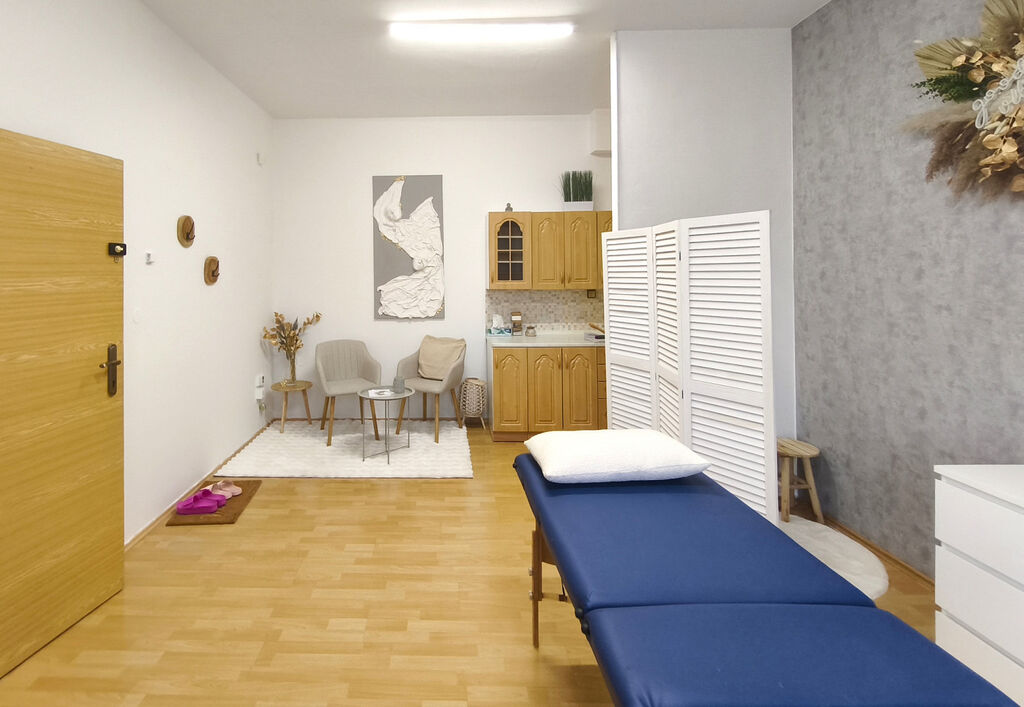 Nabízíme k pronájmu prostor 22m² vhodný jako kancelář, případně k provozování služeb - masérna.
