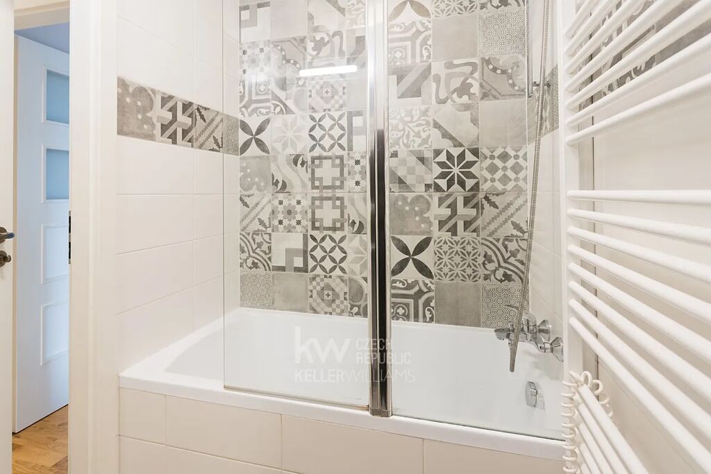 Byt dále disponuje chodbou s velkou vestavěnou skříní, koupelnou s vanou, samostatným wc a sklepní kójí. K dispozici možné využít společnou kočárkárnu v přízemí domu.