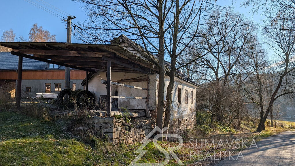 Popis: jedná se o bývalou kovárnu ležící přímo u komunikace v obci Tuškov u Kašperských Hor. Na pozemku o velikosti 197 m² stojí podsklepený dům o půdorysných rozměrech 6,8 x 18 m. Zastavěná plocha stavbou je 113 m². Dům sice není v dobré kondici, ale stavebními úpravami lze z něho vytvořit něco smysluplného. Výhodou je celé podsklepení ze stabilního kamenného zdiva se zastropením do kleneb.