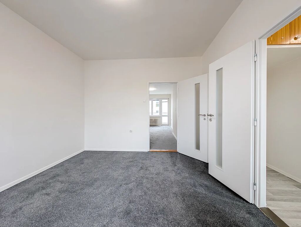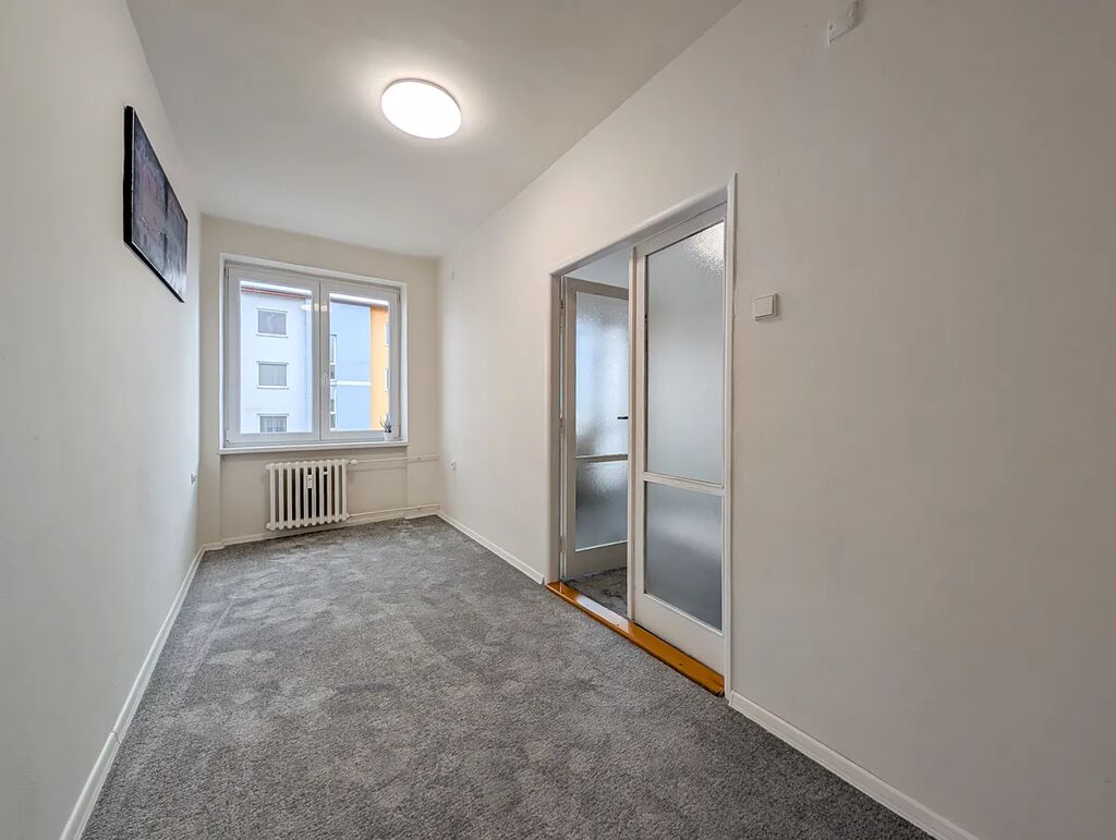 Byt je průběžně udržovaný a těšit se můžete na plastová okna, nové podlahové krytiny a interiérové dveře. Koupelnové jádro je původní, avšak také prošlo v dřívějších letech modernizací, kdy bylo obloženo obklady, instalován sprchový kout a příprava na pračku. Z obývacího pokoje je přístup na balkon orientovaný na jih a díky tomu je v interiéru dostatek světla po celý den. Pokud by Vám současná dispozice nevyhovovala, lze z bytu vykouzlit vzdušné 3+kk nebo bydlení s třemi neprůchozími pokoji.
