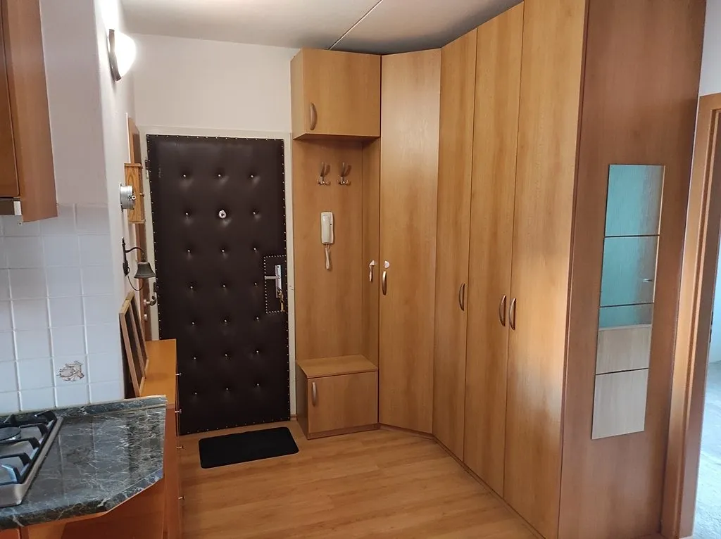 Novému uživateli bytu zůstává k dispozici kuchyňská linka vč. spotřebičů (lednice kombinovaná s mrazícím boxem, sporák, elektrická pečící trouba, myčka nádobí...), úložné skříně v pokoji a předsíni, nábytek v obývacím pokoji - vše na přiložených fotografiích bytu.