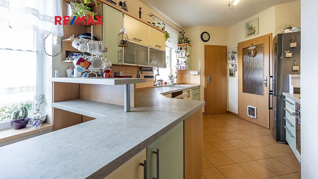 Interiér působí útulně a funkčně. Hlavní obytný prostor přirozeně navazuje na terasu a zahradu – stačí otevřít dveře a propojit život uvnitř a venku. Kuchyň nabízí dostatek pracovních ploch i úložných míst, takže vaření pro rodinu či hosty je radost, ne logistika. Ložnice jsou situovány v klidové části domu pro nerušený spánek, doplňuje je praktické zázemí (úložné prostory, technická část, předsíň), které pomáhá udržet pořádek a vzdušnost. Dispozice je přátelská k rodinnému provozu, stejně jako k práci z domova.