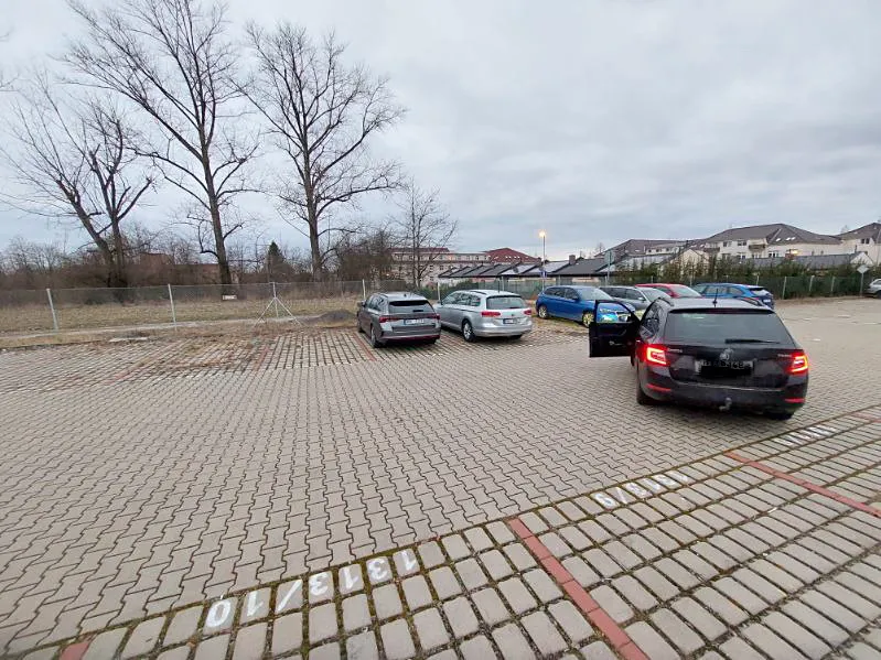 Vyznačené parkovací stání, umístěné v klidné části Milovic, v blízkosti ulic Spojovací a Slepá na klidném místě.