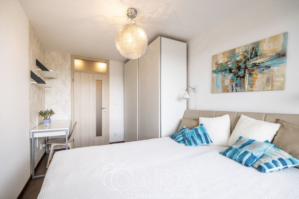 Tento stylový, kompletně vybavený byt je vhodný pro pár, rodinu i náročnější jednotlivce, kteří ocení tři neprůchozí pokoje, kvalitní vybavení, klid i rychlé spojení do centra.