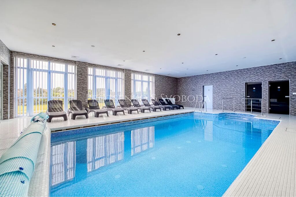 Areál nabízí užitnou plochu 900 m² a je situován na pozemku o výměře 18 .858 m². K dispozici je šest plně vybavených pokojů, každý s vlastní koupelnou, s kapacitou až 20 lůžek. Součástí je dále rozsáhlé wellness centrum s vnitřním bazénem, infrasaunou a parní lázní, fitness zóna, bowlingová dráha, venkovní bazén, tenisový kurt a minigolf. V objektu se rovněž nachází dvě profesionálně zařízené restaurace, které lze nadále provozovat nebo upravit dle podnikatelského záměru (např. eventové sály, vinárna, školící centrum apod.).