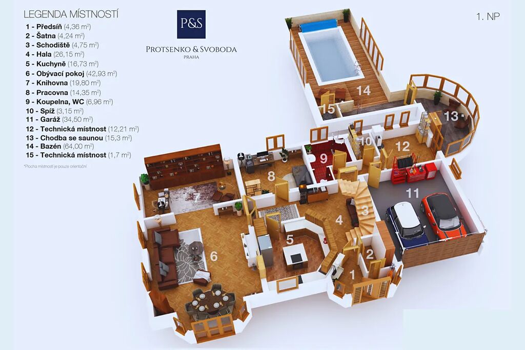 Reprezentativní vila s bazénem, jezírkem a velkým pozemkem – ideální pro komerční využití